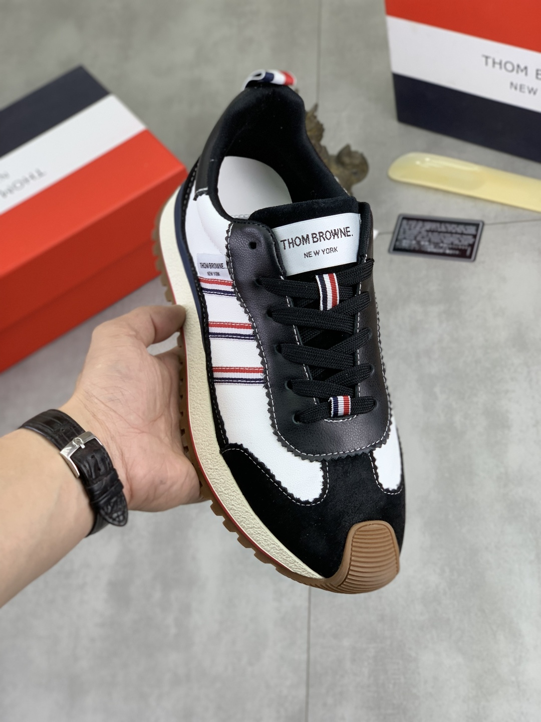 Αυτό το παπούτσια είναι AAAAA 1: 1 ποιότητας (εξαιρετικό). Τα υλικά που χρησιμοποιούνται είναι οι ίδιες με τις αρχικές. σήματα Thom Browne εμπορικό σήμα είναι δυσδιάκριτες με το αυθεντικό. Φωτογραφίες λάβει από την πραγματική παπούτσια, αυτό που θα λάβετε θα είναι 100% ίδια με τις φωτογραφίες μας.
